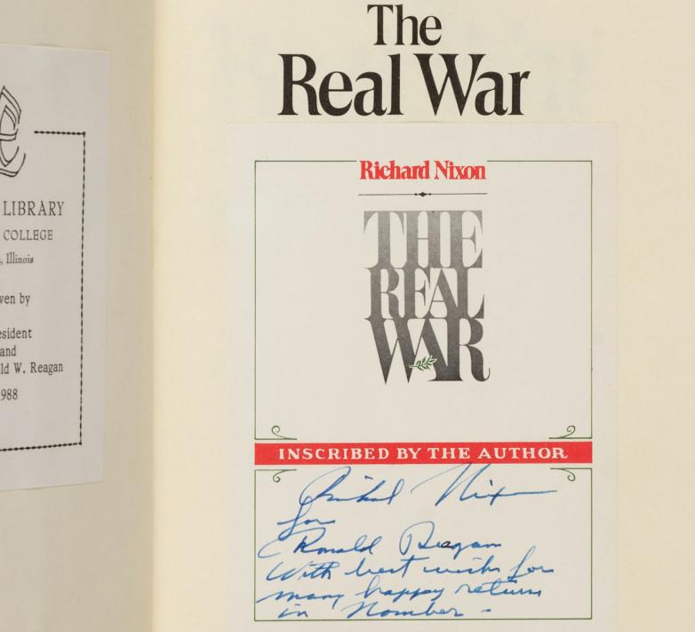 Richard Nixon, The Real War, 1980. Presentation copy inscribed by Nixon to Ronald Reagan during the 1980 election.
