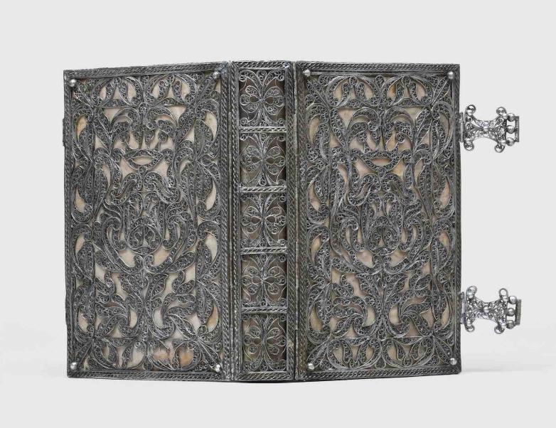 Octavo. Original grey cloth, spine and front cover lettered in gilt, blocked in blind, and decorated with a brown architectural design incorporating gilt-bordered blue and black cloth onlays. Housed in a red cloth solander box.