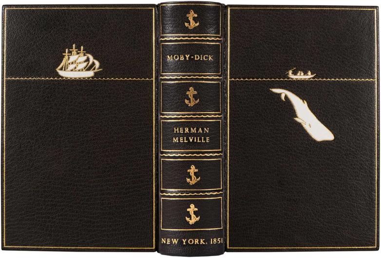 Sangorski & Sutcliffe designer binding on a first American edition of Moby-Dick, offered at Potter & Potter this week as part of the library of Robin and Kathryn Smiley.