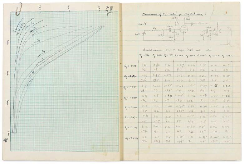 Laboratory notebook in Alan Turing's hand, from a collection of material relating to his and Donald Bayley's work on the Delilah voice-encryption project, offered at Bonhams this week.