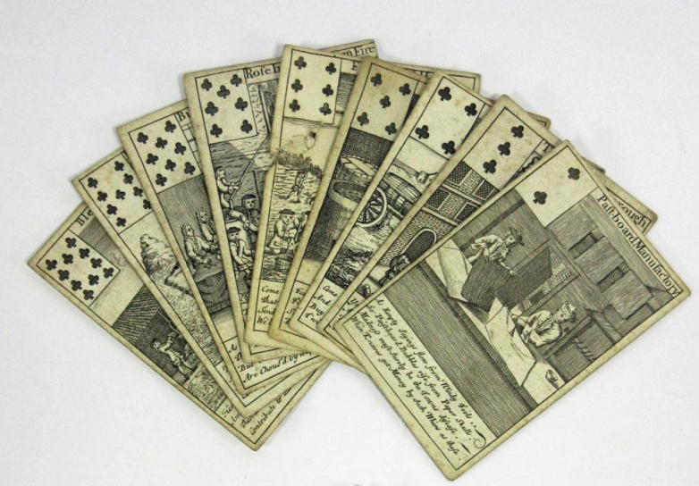 Selection from the set of South Sea Bubble playing cards (1720) offered at University Archives this week.