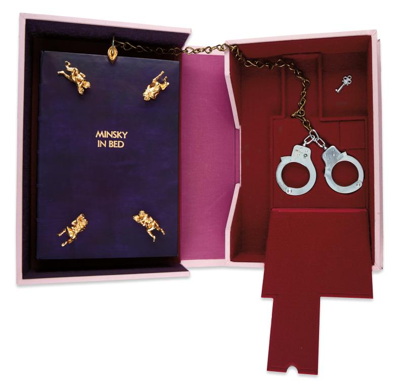 Before being moved to its permanent home at the University of Iowa Libraries Special Collections this summer, a choice selection of unique artists’ books, book objects, press works and print portfolios from the archive were selected for sale at Swann. Highlights include Christopher Wool’s Black Book, 1989, with 17 screenprints (Estimate: $20,000-30,000); a signed special edition de tête of Tom Phillips’s 1983 The Divine Comedy of Dante Alighieri, Inferno, London, number three of only ten sets ($15,000-25,000); Richard Minsky’s signed and specially dedicated edition de tête of Minsky in Bed, New York, 1996 ($7,000-10,000); and Gloria Helfgott’s unique 1989 artist book, Shakespeare Once a Printer and Bookman, New York ($1,000-1,500).