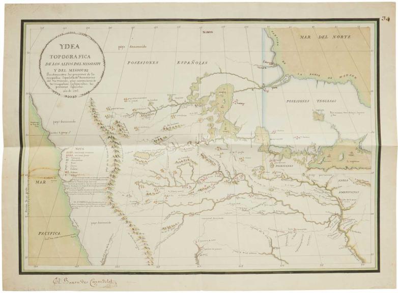 Antoine Soulard manuscript map of the upper Mississippi and Missouri Rivers, offered at Sotheby's this week.