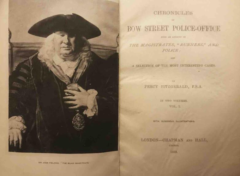 After enjoying the 11 books about the Bow Street Runners written by Bruce Alexander, I wanted to learn more about them. And so I was able to obtain a few original books and one court document. Author Henry Fielding and his blind half brother John Fielding created London’s first police force in the mid 1700s. —Ralph Serino