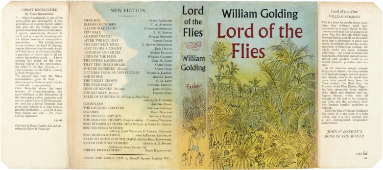The 1954 cover of the first edition of Lord of the Flies, sold at Sotheby's in 2021 for £3,780